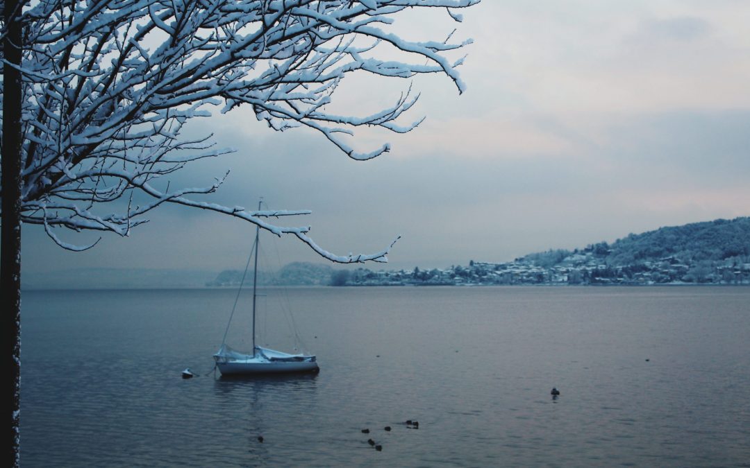 Imagen de una embarcación navegando en invierno con la marca On Boats visible y ropa adecuada para la temporada